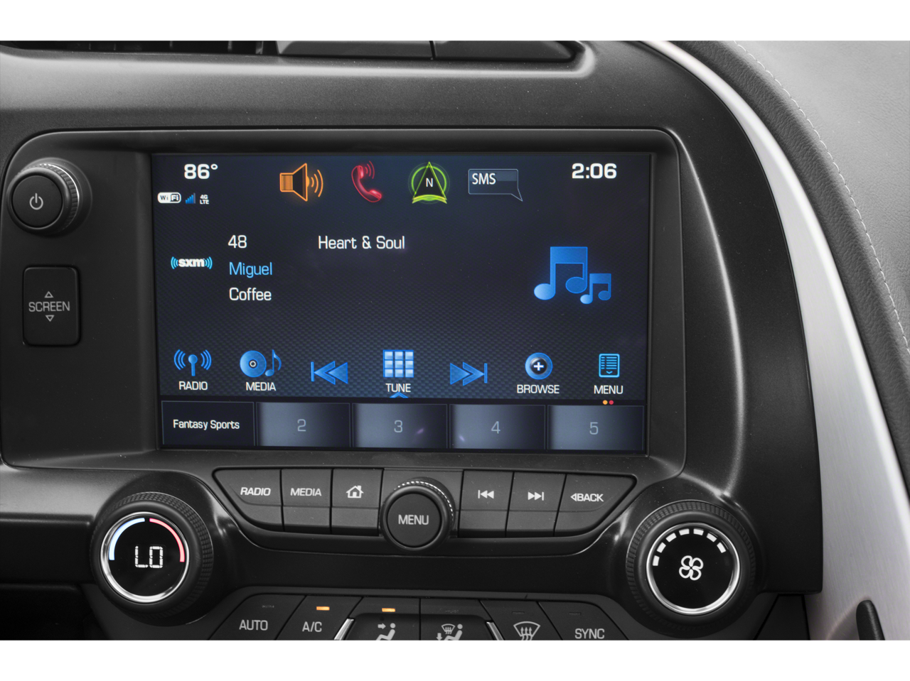 This Corvette Grand Sport is nicely equipped with Carbon Flash Badge Package, Memory Package, Preferred Equipment Group 2LT (Auto-Dimming Inside Frameless Rearview Mirror, Body-Color Outside Heated Power-Adjustable Mirrors, Bose Advanced 10-Speaker Audio System Feature, Cargo Net, Front Curb View Cameras, Head-Up Display, Heated & Vented Driver & Front Passenger Seats, Luggage Shade, Power Lumbar/Bolster Seat Adjusters, SiriusXM Radio, Theft Deterrent System, and Universal Home Remote), 2.73 Limited Slip Performance Rear Axle Ratio, 4-Wheel Disc Brakes, 8-Way Driver & Passenger Seat Adjusters, 9 Speakers, ABS brakes, Adaptive suspension, Air Conditioning, Alloy wheels, AM/FM radio: SiriusXM, Apple CarPlay/Android Auto, Automatic temperature control, Bose Premium 9-Speaker Audio System Feature, Bumpers: body-color, Carbon Flash-Painted Outside Mirrors, Compass, Delay-off headlights, Driver door bin, Driver vanity mirror, Dual front impact airbags, Dual front side impact airbags, Electronic Stability Control, Emergency communication system, Exterior Parking Camera Rear, Four wheel independent suspension, Front anti-roll bar, Front Bucket Seats, Front Center Armrest, Front dual zone A/C, Front License Plate Bracket, Front reading lights, Fully automatic headlights, GT Bucket Seats, Heads-Up Display, Heated door mirrors, High-Intensity Discharge Headlights, Illuminated entry, Leather Shift Knob, Leather steering wheel, Low tire pressure warning, Occupant sensing airbag, Outside temperature display, Painted Body-Color Carbon Fiber Removable Roof Panel, Panic alarm, Passenger door bin, Passenger vanity mirror, Performance Data & Video Recorder, Power door mirrors, Power driver seat, Power passenger seat, Power steering, Power windows, Radio data system, Radio: Chevrolet Infotainment System w/Navigation, Rear anti-roll bar, Rear window defroster, Remote keyless entry, Remote Vehicle Starter System, Speed control, Speed-sensing steering, Spoiler, Sport steering wheel, Steering wheel mounted audio controls, Tachometer, Telescoping steering wheel, Tilt steering wheel, Traction control, Trip computer, Variably intermittent wipers, Voltmeter, Wheels: 19 x 10 Fr & 20 x 12 Rr Grand Sport, and Wheels: 19 x 10 Fr & 20 x 12 Rr Grand Sport Pearl.