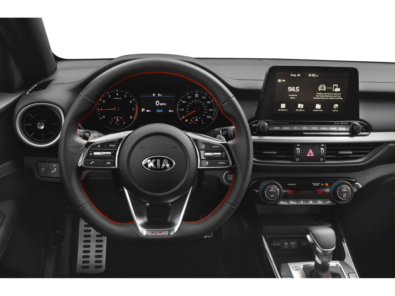 This Forte GT is nicely equipped with 4-Wheel Disc Brakes, 6 Speakers, ABS brakes, Air Conditioning, Alloy wheels, AM/FM radio: SiriusXM, Apple CarPlay & Android Auto, Auto High-beam Headlights, Brake assist, Bumpers: body-color, Cargo Net, Carpet Floor Mats, Cloth & Leatherette Seat Trim, Delay-off headlights, Driver door bin, Driver vanity mirror, Dual front impact airbags, Dual front side impact airbags, EC Mirror w/Compass & Homelink, Electronic Stability Control, Emergency communication system: UVO eServices, Exterior Parking Camera Rear, Four wheel independent suspension, Front anti-roll bar, Front Bucket Seats, Front Center Armrest, Front fog lights, Front reading lights, Front Sport Seats, Fully automatic headlights, Heated door mirrors, Illuminated entry, Leather Shift Knob, Leather steering wheel, Low tire pressure warning, Occupant sensing airbag, Overhead airbag, Overhead console, Panic alarm, Passenger door bin, Passenger vanity mirror, Power door mirrors, Power steering, Power windows, Radio data system, Radio: AM/FM/MP3 Audio System, Radio: AM/FM/MP3 harman/kardon Premium Audio System, Rear anti-roll bar, Rear seat center armrest, Rear window defroster, Remote keyless entry, Security system, Speed control, Split folding rear seat, Spoiler, Sport steering wheel, Steering wheel mounted audio controls, Tachometer, Telescoping steering wheel, Tilt steering wheel, Traction control, Trip computer, Turn signal indicator mirrors, Variably intermittent wipers, and Wheels: 18 Sport Two-Tone Finish Alloy.