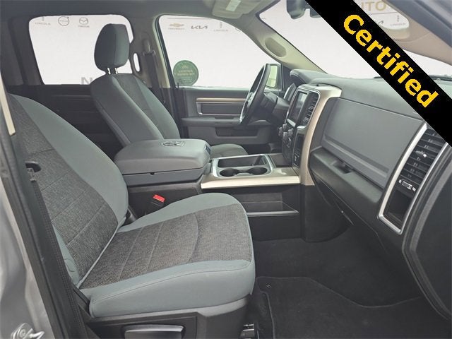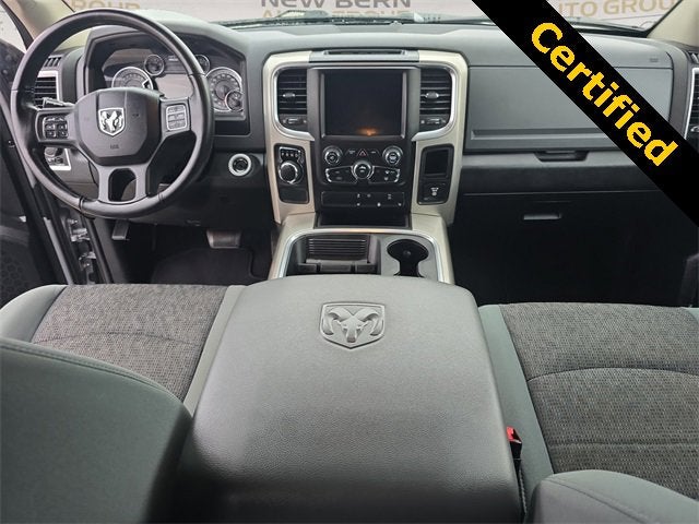 This 1500 Classic SLT is nicely equipped with 17 x 7 Aluminum Wheels, 3.21 Rear Axle Ratio, 4-Wheel Disc Brakes, 40/20/40 Split Bench Seat, 6 Speakers, ABS brakes, Air Conditioning, Alloy wheels, AM/FM radio: SiriusXM, Black Exterior Mirrors, Brake assist, Bumpers: chrome, Cloth 40/20/40 Bench Seat, Compass, Delay-off headlights, Driver door bin, Dual front impact airbags, Dual front side impact airbags, Electronic Stability Control, Exterior Mirrors w/Heating Element, Front anti-roll bar, Front Armrest w/3 Cupholders, Front Center Armrest w/Storage, Front License Plate Bracket, Front reading lights, Front wheel independent suspension, Fully automatic headlights, GPS Antenna Input, Heated door mirrors, Illuminated entry, Integrated Voice Command w/Bluetooth®, Low tire pressure warning, Manufacturer's Statement of Origin, Occupant sensing airbag, Outside temperature display, Overhead airbag, Overhead console, Panic alarm, ParkView Rear Back-Up Camera, Passenger door bin, Passenger vanity mirror, Power door mirrors, Power steering, Power windows, Radio data system, Radio: Uconnect 3 w/5 Display, Rear anti-roll bar, Rear Floor Mats, Rear seat center armrest, Rear step bumper, Remote keyless entry, Remote USB Port - Charge Only, Speed control, Storage Tray, Tachometer, Tilt steering wheel, Traction control, Trip computer, Variably intermittent wipers, and Voltmeter.