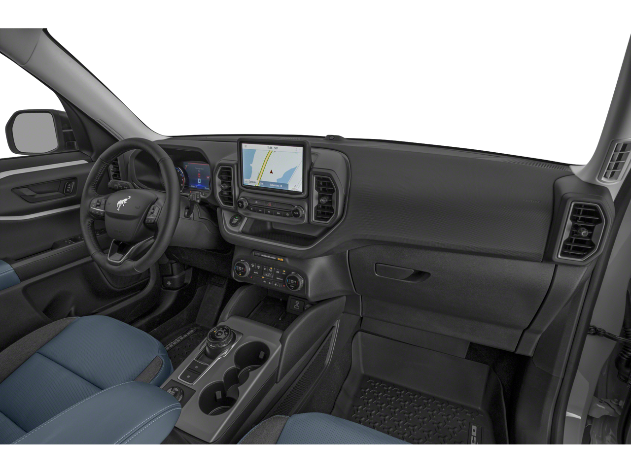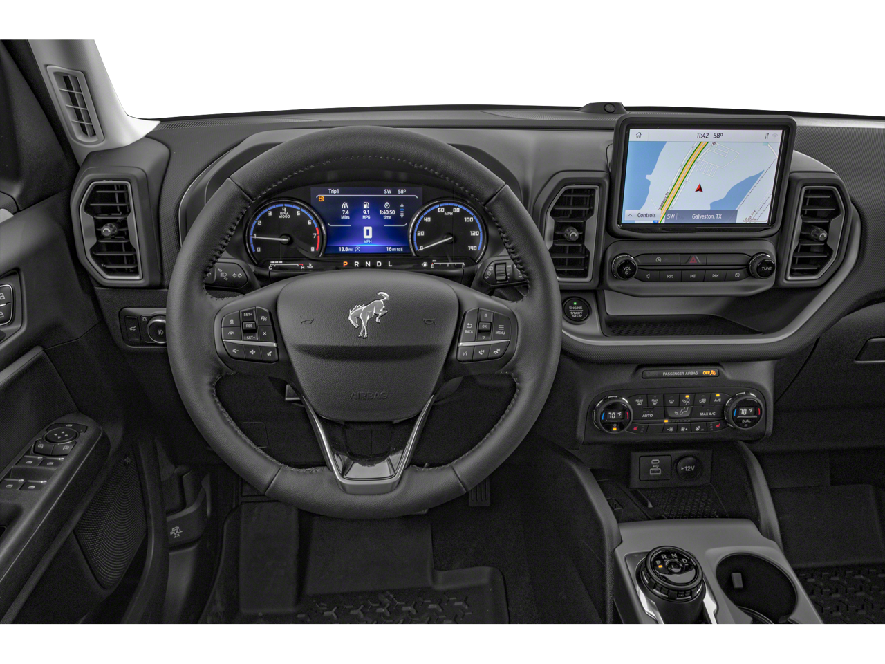This Bronco Sport Outer Banks is nicely equipped with Class II Trailer Tow Package w/Trailer Sway Control, Equipment Group 300A, Outer Banks Package (DISC) (HD Radio, Power Moonroof, and Wireless Charging Pad), 3.80 Axle Ratio, 4-Wheel Disc Brakes, 6 Speakers, ABS brakes, Air Conditioning, Alloy wheels, AM/FM radio: SiriusXM, AM/FM Stereo, Auto High-beam Headlights, Auto-dimming Rear-View mirror, Automatic temperature control, Brake assist, Compass, Delay-off headlights, Driver door bin, Driver vanity mirror, Dual front impact airbags, Dual front side impact airbags, Electronic Stability Control, Emergency communication system: SYNC 3 911 Assist, Exterior Parking Camera Rear, Four wheel independent suspension, Front anti-roll bar, Front Bucket Seats, Front Center Armrest, Front dual zone A/C, Front fog lights, Front reading lights, Fully automatic headlights, Heated door mirrors, Heated front seats, Heated steering wheel, Illuminated entry, Knee airbag, Leather Trimmed Heated Sport Contour Bucket Seats, Low tire pressure warning, Occupant sensing airbag, Outside temperature display, Overhead airbag, Overhead console, Panic alarm, Passenger door bin, Passenger vanity mirror, Power door mirrors, Power driver seat, Power passenger seat, Power steering, Power windows, Radio data system, Rain sensing wipers, Rear anti-roll bar, Rear Parking Sensors, Rear reading lights, Rear seat center armrest, Rear window defroster, Rear window wiper, Remote keyless entry, Roof rack: rails only, Security system, SiriusXM Radio, Speed control, Speed-sensing steering, Speed-Sensitive Wipers, Split folding rear seat, Steering wheel mounted audio controls, SYNC 3 Communications & Entertainment System, SYNC 3/Apple CarPlay/Android Auto, Tachometer, Telescoping steering wheel, Tilt steering wheel, Traction control, Trip computer, Variably intermittent wipers, and Wheels: 18 Ebony Black-Painted Aluminum.