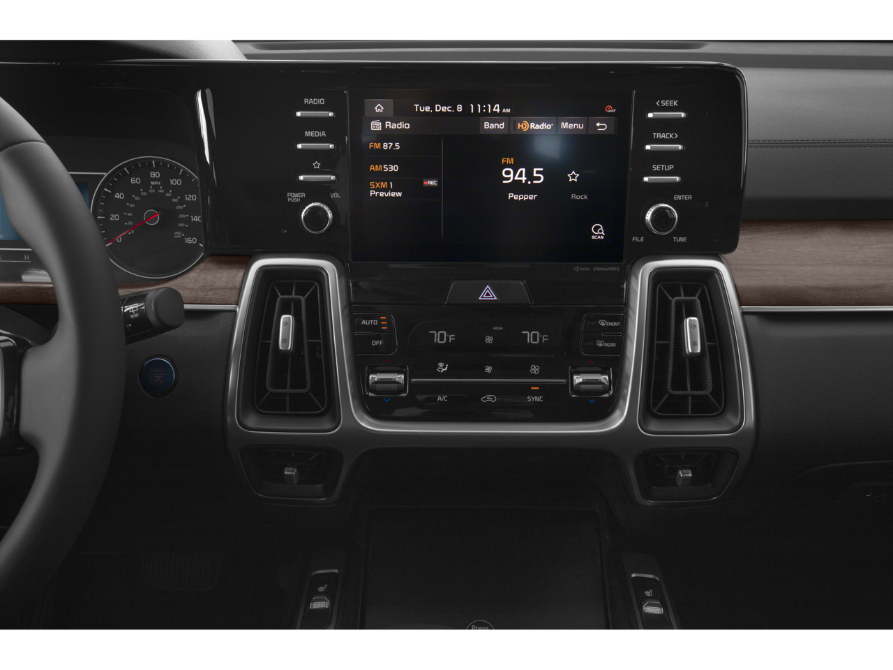 This Sorento EX is nicely equipped with Panoramic Sunroof Package (Power Sunroof w/Power Sunshade), 18 Machine-Finished Alloy Wheels, 3.316 Axle Ratio, 3rd row seats: split-bench, 4-Wheel Disc Brakes, 6 Speakers, ABS brakes, Air Conditioning, Alloy wheels, AM/FM radio: SiriusXM, Apple CarPlay & Android Auto, Auto High-beam Headlights, Auto-Dimming Mirror w/HomeLink, Automatic temperature control, Brake assist, Bumpers: body-color, Cargo Cover, Carpeted Floor Mats, Cross Bars (Interim), Delay-off headlights, Driver door bin, Driver vanity mirror, Dual front impact airbags, Dual front side impact airbags, Electronic Stability Control, Exterior Parking Camera Rear, Four wheel independent suspension, Front anti-roll bar, Front Bucket Seats, Front Center Armrest, Front dual zone A/C, Front fog lights, Front reading lights, Fully automatic headlights, Heated door mirrors, Heated Front Bucket Seats, Heated front seats, Illuminated entry, Interior Lighting Kit, Knee airbag, Leather Shift Knob, Leather steering wheel, Low tire pressure warning, Mudguards, Occupant sensing airbag, Outside temperature display, Overhead airbag, Overhead console, Panic alarm, Passenger door bin, Passenger vanity mirror, Power door mirrors, Power driver seat, Power Liftgate, Power steering, Power windows, Premium Leatherette Seat Trim, Radio data system, Radio: AM/FM Audio System, Rear air conditioning, Rear anti-roll bar, Rear reading lights, Rear window defroster, Rear window wiper, Remote keyless entry, Roof rack: rails only, Security system, Speed control, Speed-sensing steering, Split folding rear seat, Spoiler, Steering wheel mounted audio controls, Tachometer, Telescoping steering wheel, Tilt steering wheel, Traction control, Trip computer, Turn signal indicator mirrors, and Variably intermittent wipers.