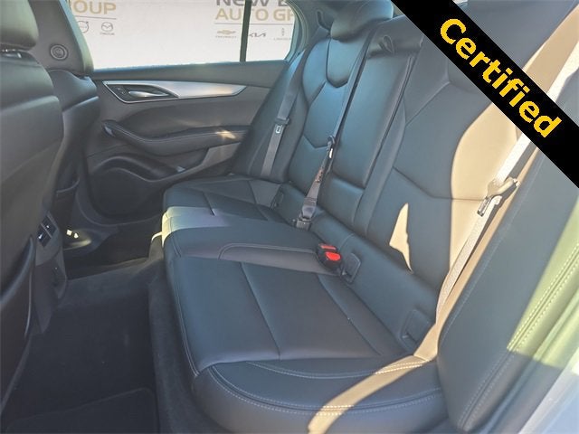 This CT5 Luxury is nicely equipped with Cold Weather Package (Heated Driver & Front Passenger Seats and Heated Steering Wheel), Preferred Equipment Group 1SB, 4-Wheel Disc Brakes, 9 Speakers, ABS brakes, Air Conditioning, Alloy wheels, AM/FM radio: SiriusXM with 360L, Apple CarPlay/Android Auto, Automatic Stop/Start w/Disable, Automatic temperature control, Brake assist, Bumpers: body-color, Compass, Delay-off headlights, Driver 2-Way Power Lumbar Seat Adjuster, Driver door bin, Driver vanity mirror, Dual front impact airbags, Dual front side impact airbags, Electronic Stability Control, Emergency communication system: OnStar and Cadillac connected services capable, Exterior Parking Camera Rear, Four wheel independent suspension, Front anti-roll bar, Front Bucket Seats, Front Center Armrest, Front dual zone A/C, Front Passenger 2-Way Power Lumbar Seat Adjuster, Front reading lights, Fully automatic headlights, Garage door transmitter, HD Radio, Heated door mirrors, Illuminated entry, Inteluxe Seating Surfaces, Knee airbag, Leather steering wheel, Low tire pressure warning, Not Equipped w/Heated Steering Wheel (DISC), Occupant sensing airbag, Outside temperature display, Overhead airbag, Overhead console, Panic alarm, Passenger door bin, Passenger vanity mirror, Power door mirrors, Power driver seat, Power passenger seat, Power steering, Power windows, Premium 9-Speaker Audio System Feature, Radio data system, Radio: Cadillac User Experience, Rain sensing wipers, Rear anti-roll bar, Rear reading lights, Rear seat center armrest, Rear window defroster, Remote keyless entry, SiriusXM w/360L, Speed control, Speed-sensing steering, Split folding rear seat, Steering wheel mounted audio controls, Tachometer, Telescoping steering wheel, Tilt steering wheel, Traction control, Trip computer, Turn signal indicator mirrors, Variably intermittent wipers, Voltmeter, and Wheels: 18 Alloy w/Bright Silver Finish.
