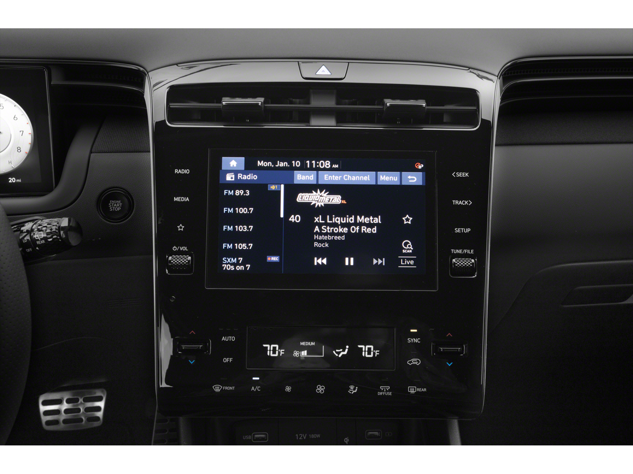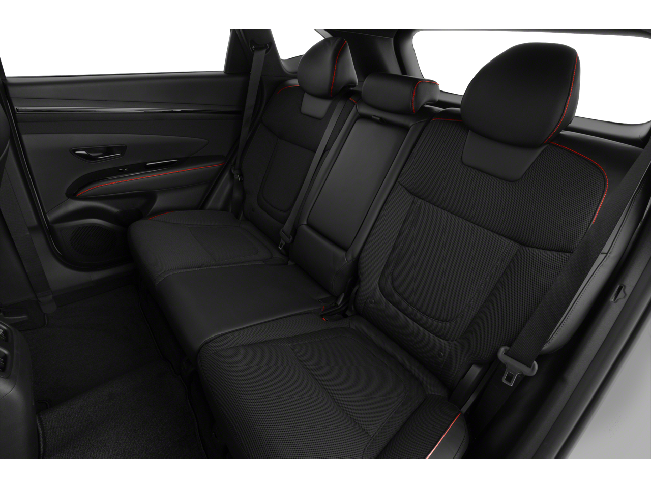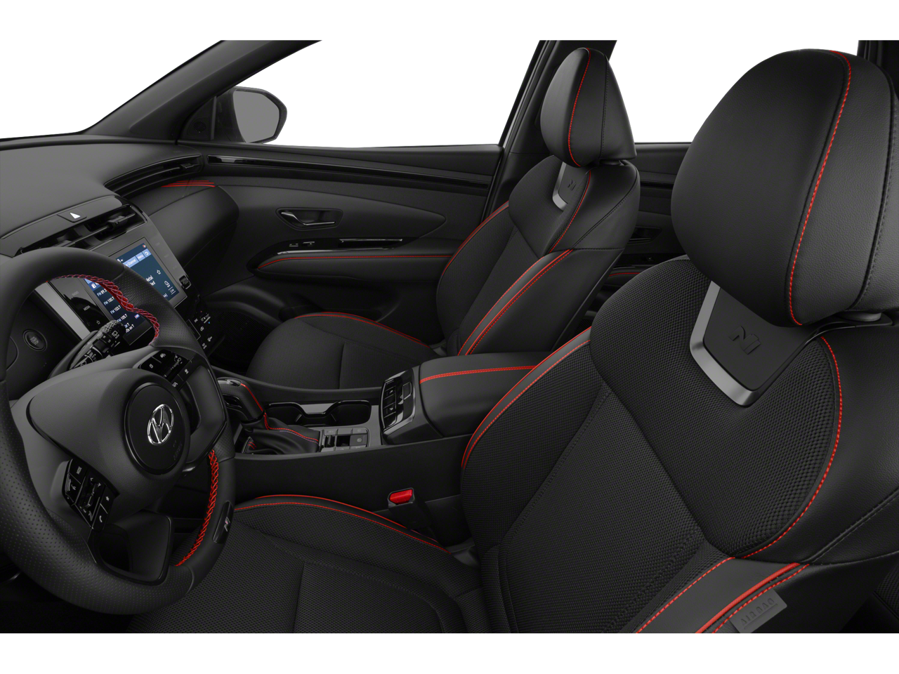 This Tucson N Line is nicely equipped with Cargo Package (Cargo Net, Cargo Tray, and First Aid Kit), Option Group 01, 3.648 Axle Ratio, 4-Wheel Disc Brakes, 8 Speakers, ABS brakes, Air Conditioning, Alloy wheels, AM/FM radio: SiriusXM, Apple CarPlay & Android Auto, Auto High-beam Headlights, Auto-dimming Rear-View mirror, Automatic temperature control, Brake assist, Bumpers: body-color, Cargo Cover, Carpeted Floor Mats, Delay-off headlights, Driver door bin, Driver vanity mirror, Dual front impact airbags, Dual front side impact airbags, Electronic Stability Control, Emergency communication system: Blue Link Connected Car Service (3-year complimentary subscription), Four wheel independent suspension, Front anti-roll bar, Front Bucket Seats, Front Center Armrest, Front dual zone A/C, Front reading lights, Fully automatic headlights, Garage door transmitter: HomeLink, Heated door mirrors, Heated Front Bucket Seats, Heated front seats, Illuminated entry, Low tire pressure warning, Occupant sensing airbag, Outside temperature display, Overhead airbag, Overhead console, Panic alarm, Passenger door bin, Passenger vanity mirror, Power door mirrors, Power driver seat, Power Liftgate, Power steering, Power windows, Radio data system, Radio: Bose Premium w/AM/FM/HD/SiriusXM Audio System, Rear anti-roll bar, Rear reading lights, Rear seat center armrest, Rear window defroster, Rear window wiper, Remote keyless entry, Roof rack: rails only, Security system, Speed control, Split folding rear seat, Spoiler, Sport Combination Seat Trim, Steering wheel mounted audio controls, Tachometer, Telescoping steering wheel, Tilt steering wheel, Traction control, Trip computer, Turn signal indicator mirrors, Variably intermittent wipers, and Wheels: N Line 19 x 7.5J Alloy.