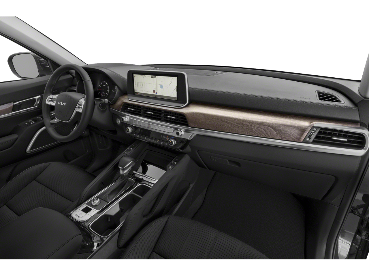 This Telluride EX is nicely equipped with EX Premium Package (20 x 7.5 Machined Alloy Wheels, 2nd Row Captain Chairs, LED Headlamps, and Satin Chrome Roof Rails), 3.648 Axle Ratio, 3rd row seats: split-bench, 4-Wheel Disc Brakes, 6 Speakers, ABS brakes, Air Conditioning, Alloy wheels, AM/FM radio: SiriusXM, Apple CarPlay & Android Auto, Auto-dimming Rear-View mirror, Automatic temperature control, Brake assist, Bumpers: body-color, Carpeted Floor Mats, Compass, Delay-off headlights, Driver door bin, Driver vanity mirror, Dual front impact airbags, Dual front side impact airbags, Electronic Stability Control, Emergency communication system: 911 Connect, Four wheel independent suspension, Front anti-roll bar, Front Bucket Seats, Front Center Armrest, Front dual zone A/C, Front reading lights, Fully automatic headlights, Heated & Ventilated Front Bucket Seats, Heated door mirrors, Heated front seats, Illuminated entry, Knee airbag, Leather Seat Trim, Leather Shift Knob, Leather steering wheel, Low tire pressure warning, Navigation System, Occupant sensing airbag, Outside temperature display, Overhead airbag, Overhead console, Panic alarm, Passenger door bin, Passenger vanity mirror, Power door mirrors, Power driver seat, Power Liftgate, Power moonroof, Power passenger seat, Power steering, Power windows, Radio data system, Radio: AM/FM Display Audio System, Rear air conditioning, Rear anti-roll bar, Rear audio controls, Rear reading lights, Rear seat center armrest, Rear window defroster, Rear window wiper, Reclining 3rd row seat, Remote keyless entry, Roof rack: rails only, Security system, Smart Key w/ Push Button and Remote Start, Speed control, Speed-sensing steering, Split folding rear seat, Spoiler, Steering wheel mounted audio controls, Tachometer, Telescoping steering wheel, Tilt steering wheel, Traction control, Trip computer, Turn signal indicator mirrors, Variably intermittent wipers, Ventilated front seats, and Wheels: 18 x 7.5 Machined Alloy.