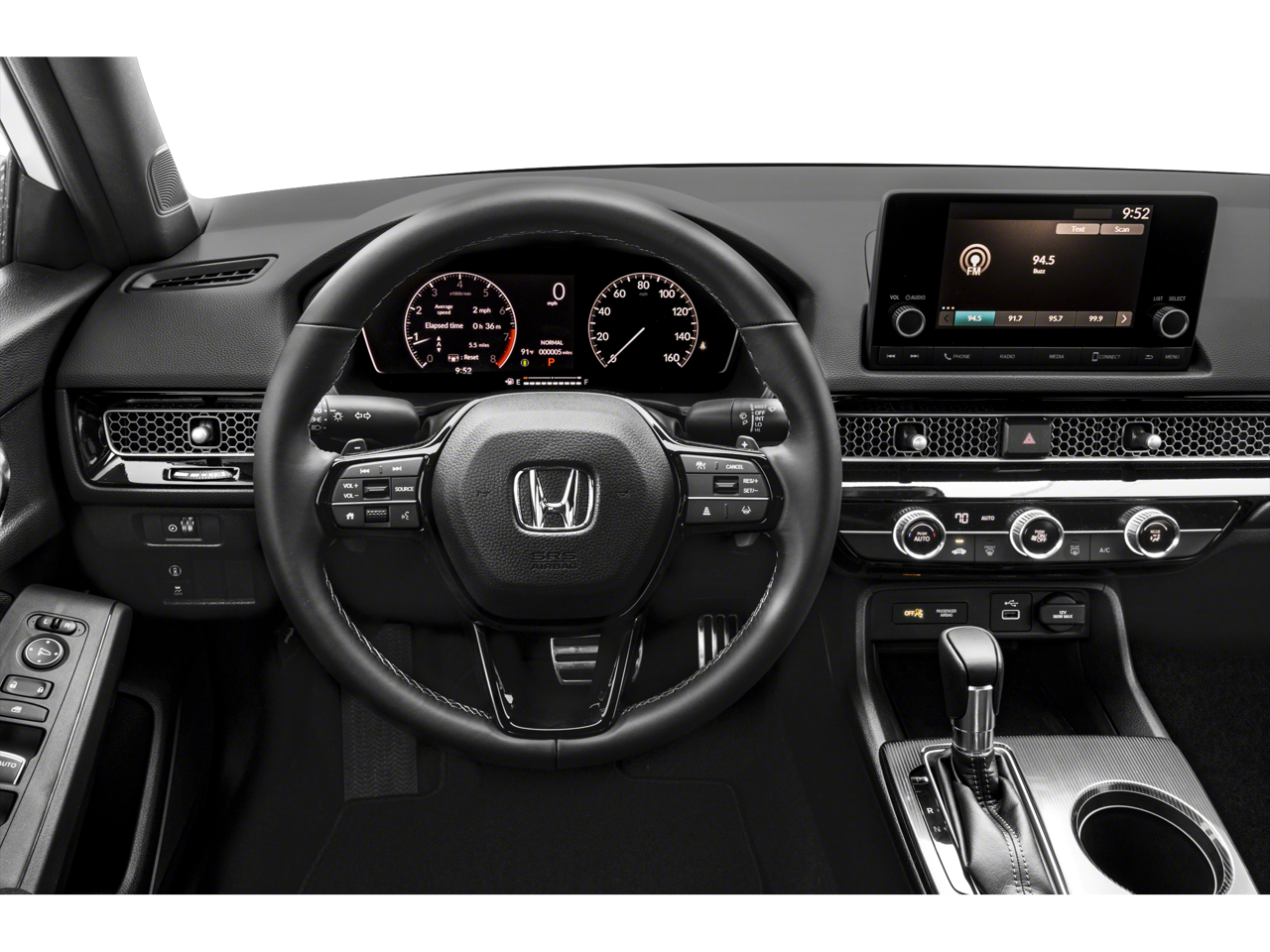 This Civic Sport is nicely equipped with 4-Wheel Disc Brakes, 8 Speakers, ABS brakes, Adaptive Cruise Control: Adaptive Cruise Control (ACC) with Low-Speed Follow, Air Conditioning, Alloy wheels, AM/FM radio, Apple CarPlay/Android Auto, Auto High-beam Headlights, Automatic temperature control, Brake assist, Bumpers: body-color, Cloth Seat Trim, Delay-off headlights, Driver door bin, Driver vanity mirror, Dual front impact airbags, Dual front side impact airbags, Electronic Stability Control, Emergency communication system: HondaLink, Exterior Parking Camera Rear, Four wheel independent suspension, Front anti-roll bar, Front Bucket Seats, Front Center Armrest, Front reading lights, Fully automatic headlights, Illuminated entry, Knee airbag, Leather Shift Knob, Leather steering wheel, Low tire pressure warning, Occupant sensing airbag, Outside temperature display, Overhead airbag, Panic alarm, Passenger door bin, Passenger vanity mirror, Power door mirrors, Power steering, Power windows, Radio data system, Radio: 180-Watt Audio System w/8 Speakers, Rear anti-roll bar, Rear side impact airbag, Rear window defroster, Remote keyless entry, Security system, Speed control, Speed-sensing steering, Steering wheel mounted audio controls, Tachometer, Telescoping steering wheel, Tilt steering wheel, Traction control, Trip computer, and Wheels: 18 Gloss Black Alloy.
