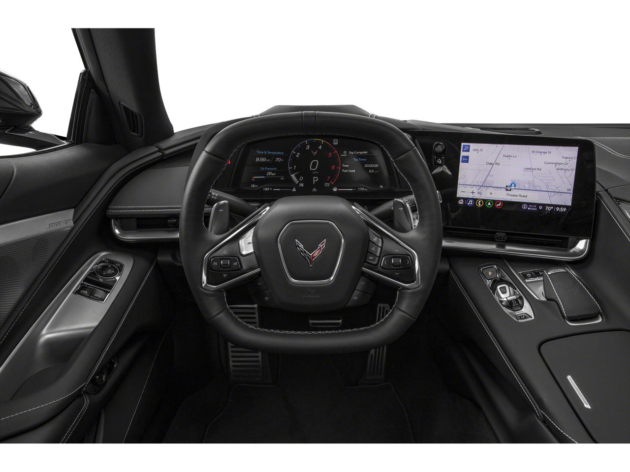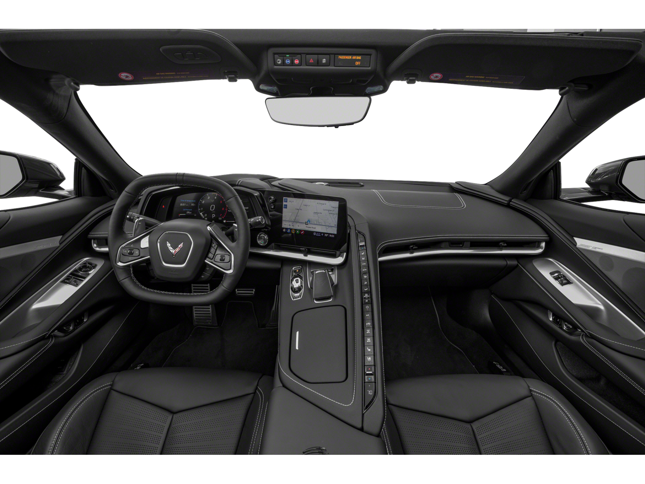 This Corvette Stingray is nicely equipped with Battery Protection Package, Carbon Flash Metallic Painted Outside Mirrors (Carbon Flash Metallic-Painted Outside Mirrors), Memory Driver & Passenger Convenience Package, Preferred Equipment Group 2LT (2 Cargo Nets, Bose Performance Series Sound System w/14 Speakers, Driver Power Bolster Seat Adjuster, Electrical Theft Deterrent System, HD Front & Rear Vision Cameras, Head-Up Display, Heated & Vented Driver & Passenger Seats, Heated Steering Wheel, Passenger Power Bolster Seat Adjuster, Performance Data & Video Recorder, Power Driver Lumbar Control Seat Adjuster, Power Passenger Lumbar Control Seat Adjuster, Power-Adjustable Outside Heated Mirrors, Rear Cross Traffic Alert, Side Blind Zone Alert, Universal Home Remote, Vehicle Inclination Theft Deterrent Sensor, Vehicle Interior Movement Theft Deterrent Sensor, and Wireless Charging for Devices), Z51 Performance Package (Electronic Limited-Slip Differential, Heavy-Duty Cooling System, Performance Exhaust w/Stainless-Steel Tips, Performance Rear Axle Ratio, Rear Z51 Spoiler, Z51 Performance Brakes, and Z51 Performance Suspension), 14 Speakers, 4-Wheel Disc Brakes, 8-Way Power Driver Seat Adjuster, 8-Way Power Passenger Seat Adjuster, ABS brakes, Air Conditioning, Alloy wheels, AM/FM radio: SiriusXM, Auto High-beam Headlights, Auto-dimming door mirrors, Auto-dimming Rear-View mirror, Automatic Leveling System Headlamp Control, Automatic temperature control, Black Exhaust Tips, Black Lug Nuts (LPO), Black Tow Hook (LPO), Black Wheel Locks (LPO), Body-Color Removable Roof Panel, Brake assist, Bumpers: body-color, Compass, Delay-off headlights, Driver door bin, Driver vanity mirror, Dual front impact airbags, Dual front side impact airbags, Electronic Stability Control, Emergency communication system: OnStar and Chevrolet connected services capable, Exterior Parking Camera Rear, Four wheel independent suspension, Front anti-roll bar, Front Bucket Seats, Front Center Armrest, Front dual zone A/C, Front Lift Adjustable Height w/Memory, Front reading lights, Fully automatic headlights, Garage door transmitter, GT1 Bucket Seats, GT2 Bucket Seats, Heated door mirrors, Heated front seats, Heated steering wheel, Illuminated entry, Leather Shift Knob, Leather steering wheel, Low tire pressure warning, Memory seat, Mulan Lthr Seating Surfaces w/Perforated Inserts, Navigation System, Occupant sensing airbag, Outside temperature display, Overhead console, Panic alarm, Passenger door bin, Passenger vanity mirror, Performance Traction Management, Power door mirrors, Power driver seat, Power passenger seat, Power steering, Power windows, Premium audio system: Chevrolet Infotainment 3 Premium, Premium Carpeted Floor Mats, Radio data system, Radio: Chevrolet Infotainment 3 Premium System, Rear anti-roll bar, Rear window defroster, Remote keyless entry, Security system, Speed control, Speed-sensing steering, Sport steering wheel, Steering wheel memory, Steering wheel mounted audio controls, Tachometer, Telescoping steering wheel, Tilt steering wheel, Traction control, Transparent Removable Roof Panel, Trip computer, Turn signal indicator mirrors, Variably intermittent wipers, Ventilated front seats, Voltmeter, Wheels: 19 x 8.5 Fr/20 x 11 Rr Bright Silver, Wheels: 19 x 8.5 Fr/20 x 11 Rr Carbon Flash, and Z51 Perf Suspension w/Magnetic Selective Ride Cntrl.